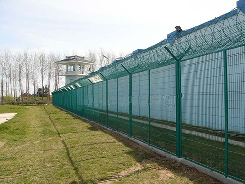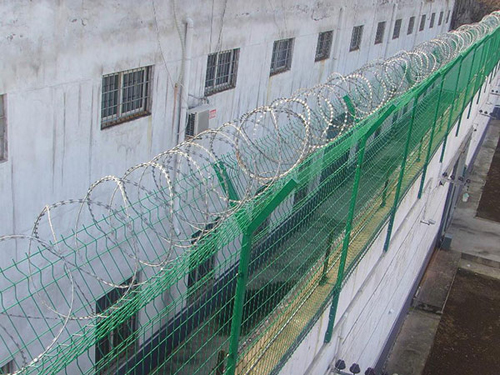 监狱护栏网又称作“Y型安全防御护网”,是由V型支架立柱,加强型焊接片网,安全防盗连接件和热镀锌刀片刺笼组成强度和安全防御性级别很高。近年来,被广泛应用在监狱,军事基地等高安全场所。(注:如果在监狱护栏网顶部加装刀片刺丝、刀片刺绳后又很好的增强了安全防护性能)。